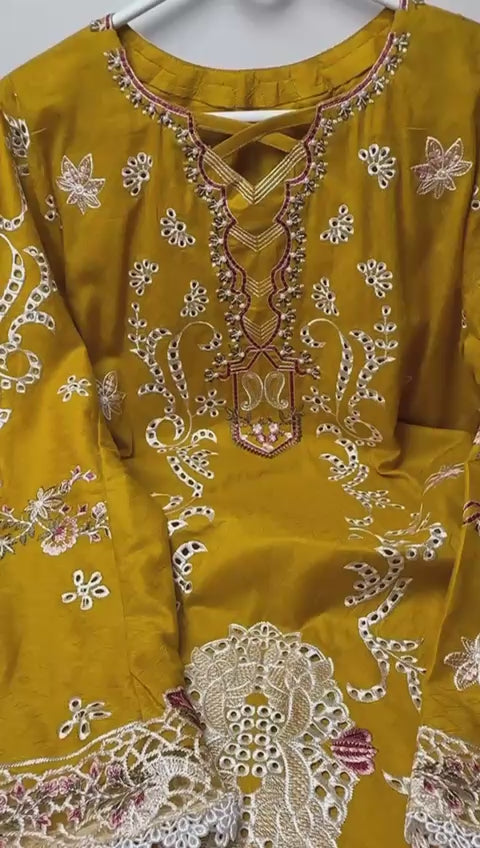 3 Piece Embroidered Shirt Trouser Duppata Fabric: LawnColor: Yellow Note: Color may vary slightly due to studio lighting and screen resolution.