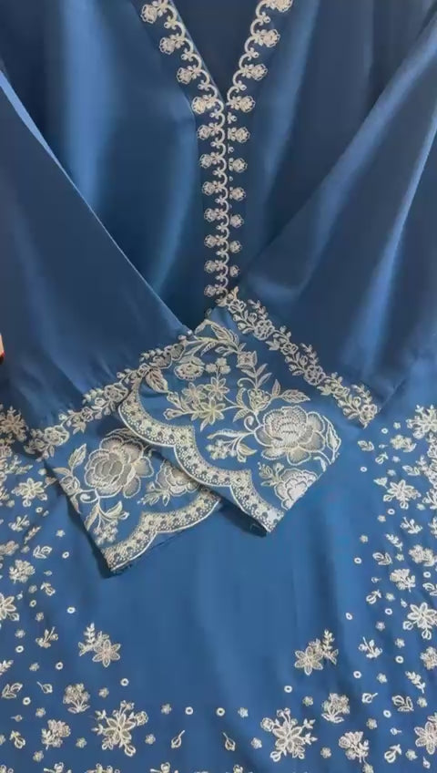 2 Piece Embroidered Suit with embroidered trousers. Fabric: DhanakColor: Navy Note: Color may vary slightly due to studio lighting and screen resolution.